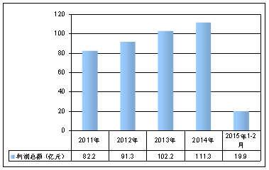 图表 7 2011-2015年2月我国运动护具 行业 利润总额 分析
