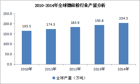图表 13:2010-2014年全球微硅粉 行业 产量 分析