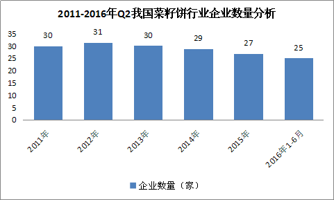 图表 3:2011-2016年Q2我国菜籽饼 行业 企业数量 分析