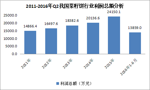 图表 7:2011-2016年Q2我国菜籽饼 行业 利润总额 分析