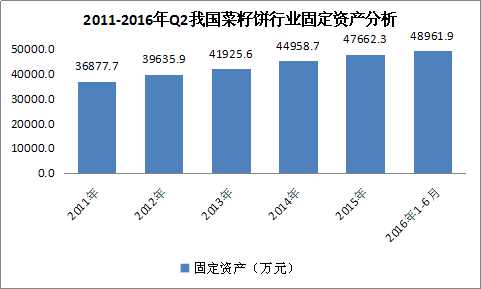 图表 5:2011-2016年Q2我国菜籽饼 行业 固定资产 分析