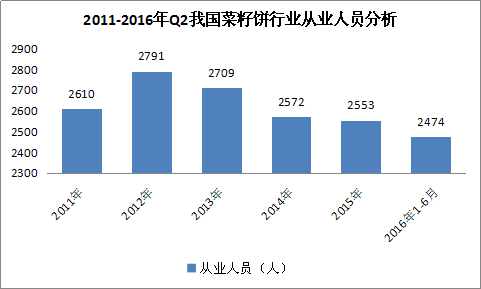 图表 4:2011-2016年Q2我国菜籽饼 行业 从业人员 分析