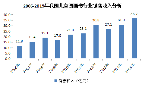 图表 5:2006-2015年我国儿童图画书 行业 销售收入 分析