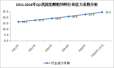 图表 8:2011-2016年Q2我国发酵粕饲料 行业 活力系数 分析