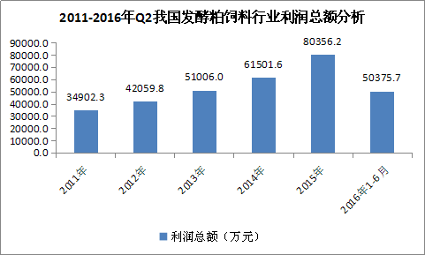 图表 6:2011-2016年Q2我国发酵粕饲料 行业 利润总额 分析