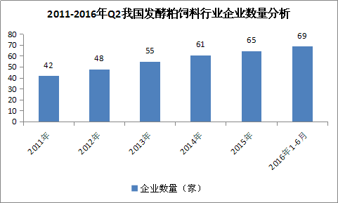 图表 2:2011-2016年Q2我国发酵粕饲料 行业 企业数量 分析