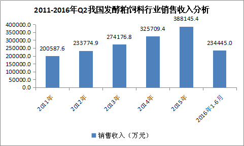 图表 5:2011-2016年Q2我国发酵粕饲料 行业 销售收入 分析