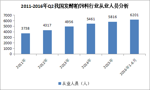 图表 3:2011-2016年Q2我国发酵粕饲料 行业 从业人员 分析