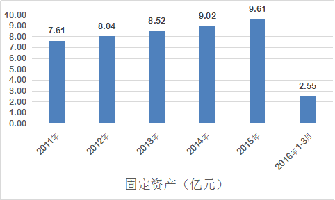 图表 4 2011-2016年3月我国滑雪板 行业 固定资产 分析
