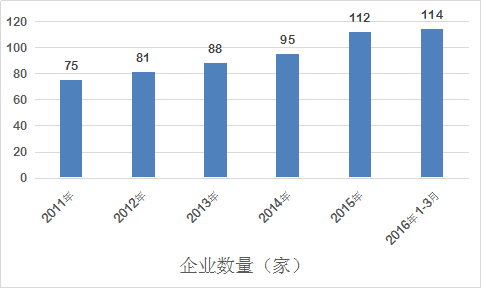 图表 2 2011-2016年3月我国滑雪板 行业 企业数量 分析