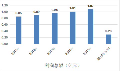 图表 6 2011-2016年3月我国滑雪板 行业 利润总额 分析