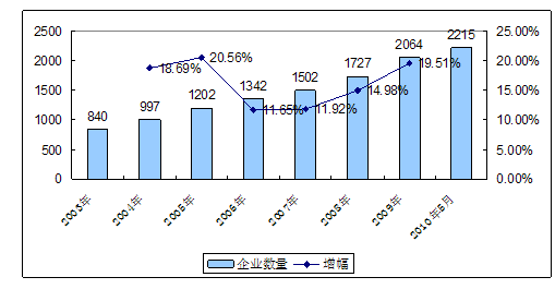 一、2003-2010年 行业 企业数量发展状况
