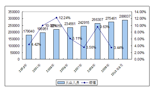 二、2003-2010年 行业 从业人员发展状况