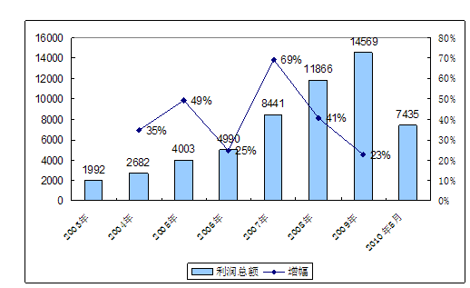 五、2003-2010年 行业 利润总额发展状况
