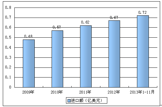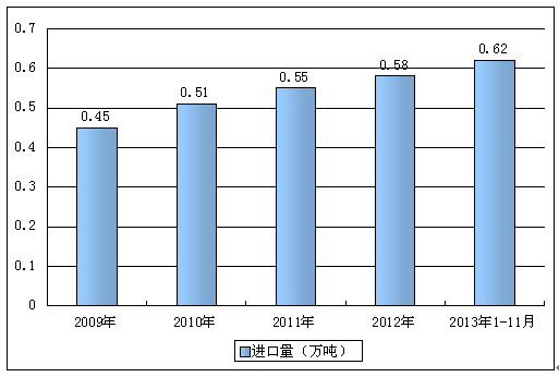 图表 62 2009-2013年11月我国果寡糖 行业 进口量 分析