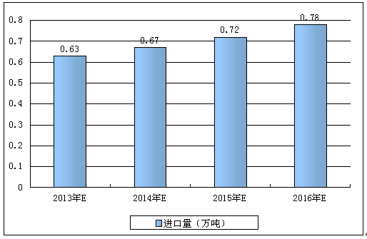 图表 66 2013-2016年我国果寡糖 行业 进口预测:
