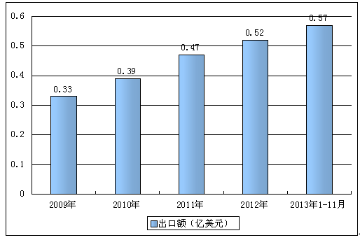图表 61 2009-2013年11月我国果寡糖 行业 出口额 分析