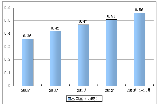 图表 63 2009-2013年11月我国果寡糖 行业 出口量 分析