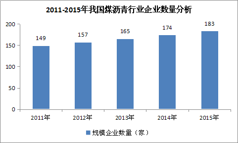 图表 3:2011-2015年我国煤沥青 行业 企业数量 分析