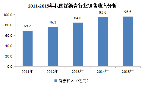 图表 6:2011-2015年我国煤沥青 行业 销售收入 分析