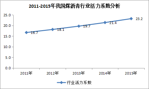 图表 8:2011-2015年我国煤沥青 行业 活力系数 分析