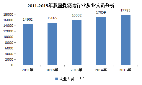 图表 4:2011-2015年我国煤沥青 行业 从业人员 分析