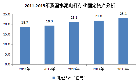 图表 7:2011-2015年我国水泥电杆 行业 固定资产 分析