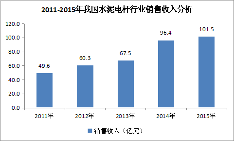 图表 8:2011-2015年我国水泥电杆 行业 销售收入 分析