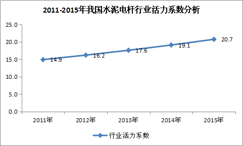 图表 10:2011-2015年我国水泥电杆 行业 活力系数 分析