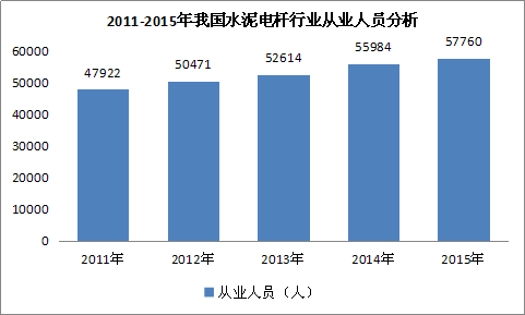 图表 6:2011-2015年我国水泥电杆 行业 从业人员 分析