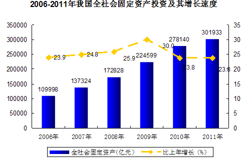 图表 25 2006-2011年我国全社会固定资产投资及其增长速度