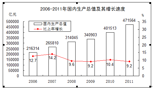 初步核算,全年国内生产总值471564亿元,比上年增长9.2%。其中,第一产业增加值47712亿元,增长4.5%;第二产业增加值220592亿元,增长10.6%;第三产业增加值203260亿元,增长8.9%。第一产业增加值占国内生产总值的比重为10.1%,第二产业增加值比重为46.8%,第三产业增加值比重为43.1%。