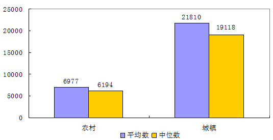 图表 19 2011年城乡居民人均收入平均数与中位数比较情况(元)