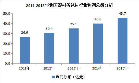 图表 7:2011-2015年我国塑料药包材 行业 利润总额 分析