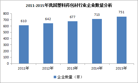 图表 3:2011-2015年我国塑料药包材 行业 企业数量 分析