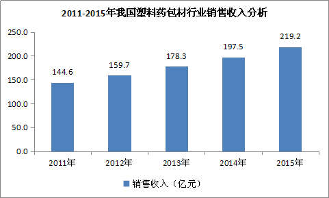图表 6:2011-2015年我国塑料药包材 行业 销售收入 分析