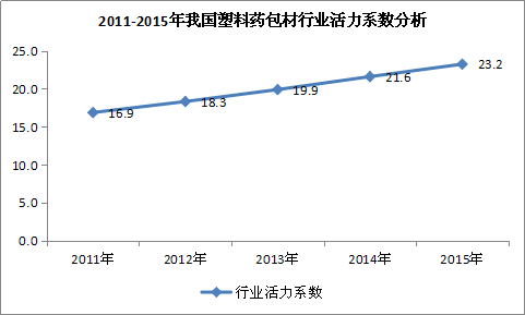 图表 8:2011-2015年我国塑料药包材 行业 活力系数 分析