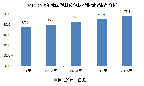 图表 5:2011-2015年我国塑料药包材 行业 固定资产 分析