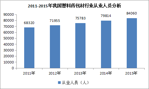 图表 4:2011-2015年我国塑料药包材 行业 从业人员 分析