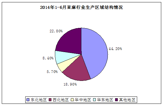 图表132014年1-6月亚麻 行业 生产区域结构情况