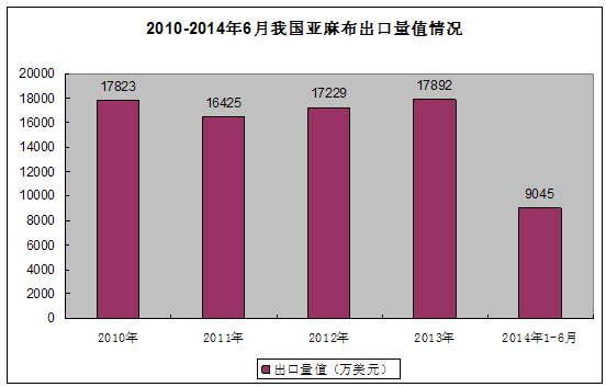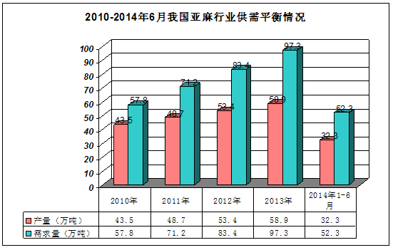 图表182010-2014年6月我国亚麻 行业 供需平衡情况