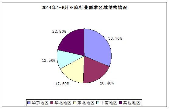 图表152014年1-6月我国亚麻 行业 需求区域结构情况