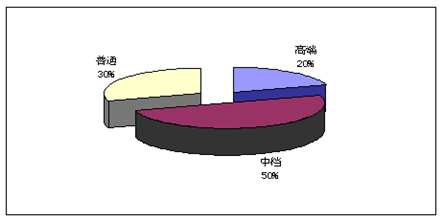 在产品结构调整和优化上,形成适应市场多层次需求,各个文件次产品合理配置的产品结构,其中高端产品约占20%;中档产品约占50%;普通产品约占30%。