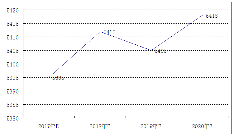图表 14 2017-2020年我国玻璃纤维 行业 生产规模预测