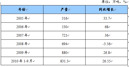 2005-2010年我国不锈钢产量增长情况