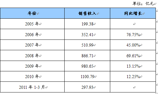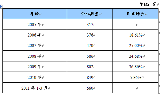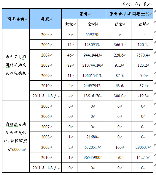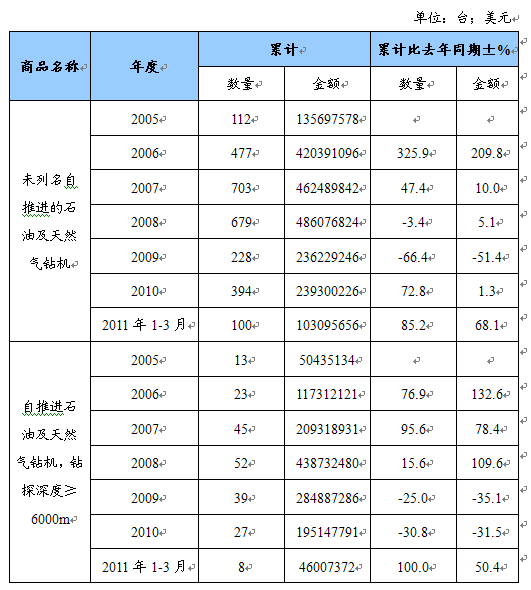 2005-2011年3月钻采装备出口量值及同比增长统计表
