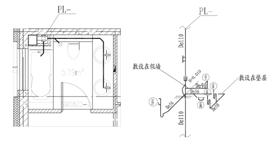 目前,铸铁管没有苏维拖管件,只能采用双立管系统,单层连接,在现阶段条件下,没法完成同层排水设计。对于PVC 也是一样。