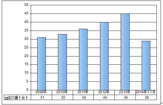 图表 16 2009-2014年7月我国石油钻机 行业 出口量 分析
