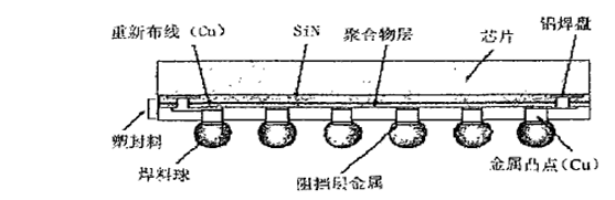 WLCSP所涉及的关键技术除了前工序所必须的金属淀积技术、光刻技术、蚀刻技术等以外,还包括重新布线(RDL)技术和凸点制作技术。通常芯片上的引出端焊盘是排到在管芯周边的方形铝层,为了使WLP适应了SMT二级封装较宽的焊盘节距,需将这些焊盘重新分布,使这些焊盘由芯片周边排列改为芯片有源面上阵列排布,这就需要重新布线(RDL)技术。另外将方形铝焊盘改为易于与焊料粘接的圆形铜焊盘,重新布线中溅射的凸点下金属(UBM)如Ti-Cu-Ni中的Cu应有足够的厚度(如数百微米),以便使焊料凸点连接时有足够的强度,也可以用电镀加厚Cu层。焊料凸点制作技术可采用电镀法、化学镀法、蒸发法、置球法和焊膏印刷法。目前仍以电镀法最为广泛,其次是焊膏印刷法。重新布线中UBM材料为Al/Niv/Cu、T1/Cu/Ni或Ti/W/Au。所用的介质材料为光敏BCB(苯并环丁烯)或PI(聚酰亚胺)凸点材料有Au、PbSn、AuSn、In等。