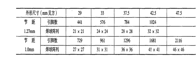FCBGA所涉及的关键技术包括芯片凸点制作技术、倒装芯片焊接技术、多层印制板制作技术(包括多层陶瓷基板和BT树脂基板)、芯片底部填充技术、焊球附接技术、散热板附接技术等。它所涉及的封装材料主要包括以下几类。凸点材料:Au、PbSn和AuSn等;凸点下金属化材料:Al/Niv/Cu、Ti/Ni/Cu或Ti/W/Au;焊接材料:PbSn焊料、无铅焊料;多层基板材料:高温共烧陶瓷基板(HTCC)、低温共烧陶瓷基板(LTCC)、BT树脂基板;底部填充材料:液态树脂;导热胶:硅树脂;散热板:铜。目前,国际上FCBGA的典型系列示于下表。